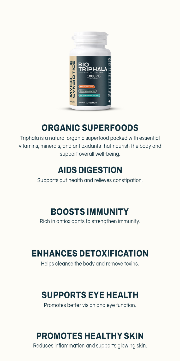 Bio Triphala is a potent, natural polyherbal supplement formulated with Amla, Behada, and Harada. It combines the power of Ayurveda to support detoxification, digestive health, and overall well-being, while promoting longevity and vitality.