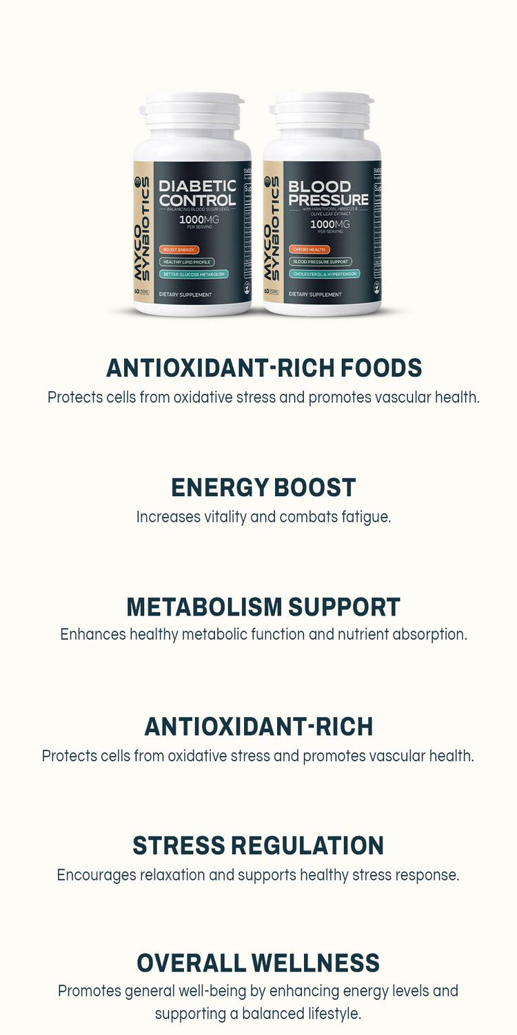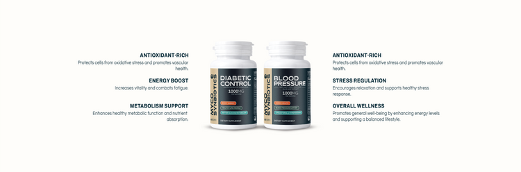 Myco Synbiotics Diabetic Control Formula supports pancreatic health, regulates blood sugar level, and mimics insulin action. It improves insulin sensitivity, enhances glucose uptake, and stabilizes blood sugar, making it an ideal for prediabetes and diabetes.