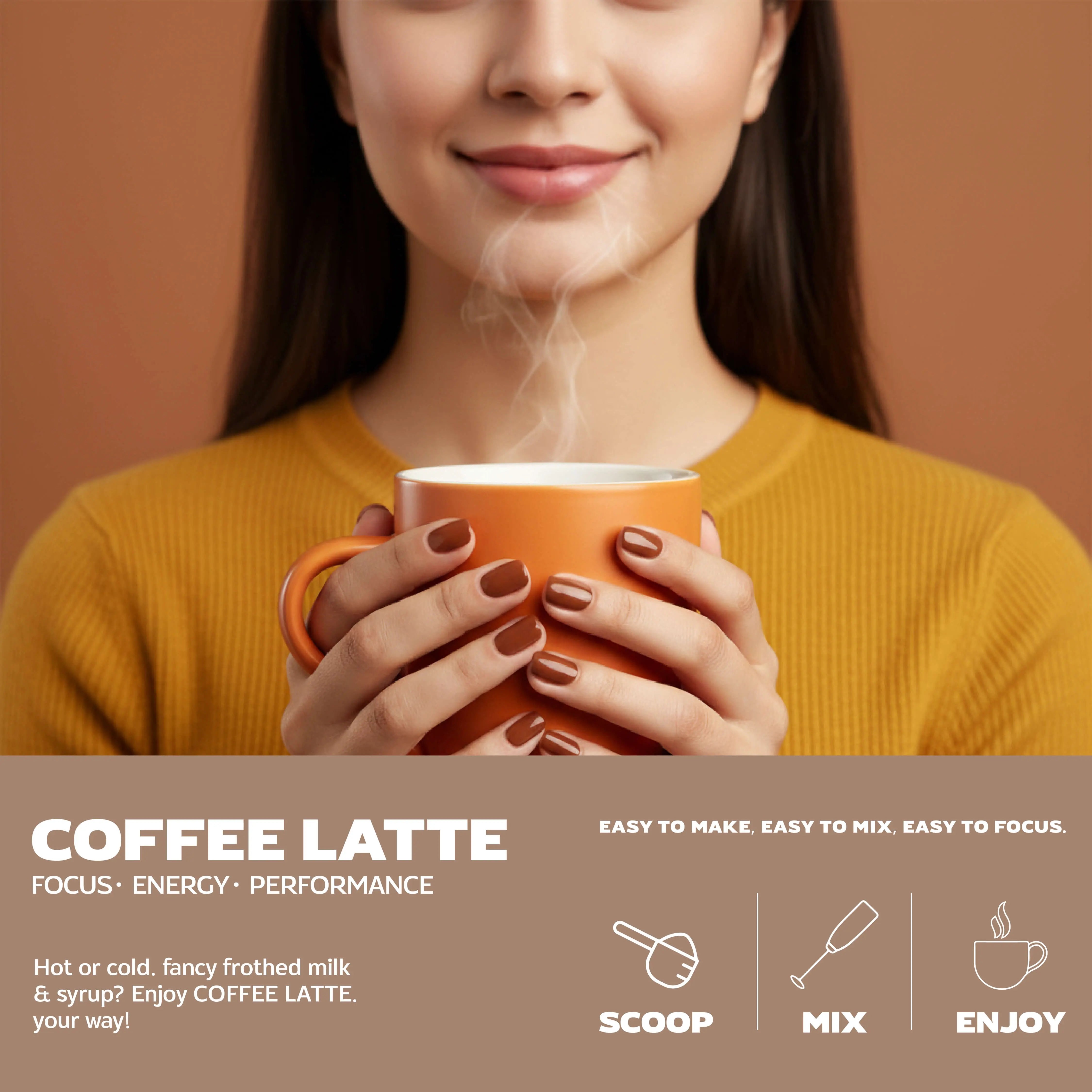 Add 1 heaped tablespoon (12.5g) of powder to 250ml of hot/cold water & mix well. Combine COFFEE LATTE. with your favourite