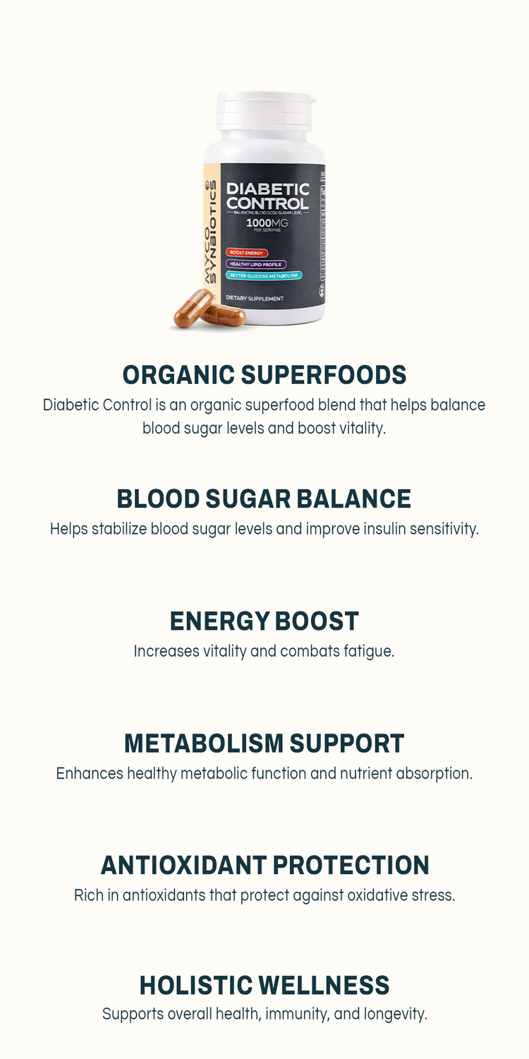 Myco Synbiotics Diabetic Control Formula supports pancreatic health, regulates blood sugar level, and mimics insulin action. It improves insulin sensitivity, enhances glucose uptake, and stabilizes blood sugar, making it an ideal for prediabetes and diabetes.