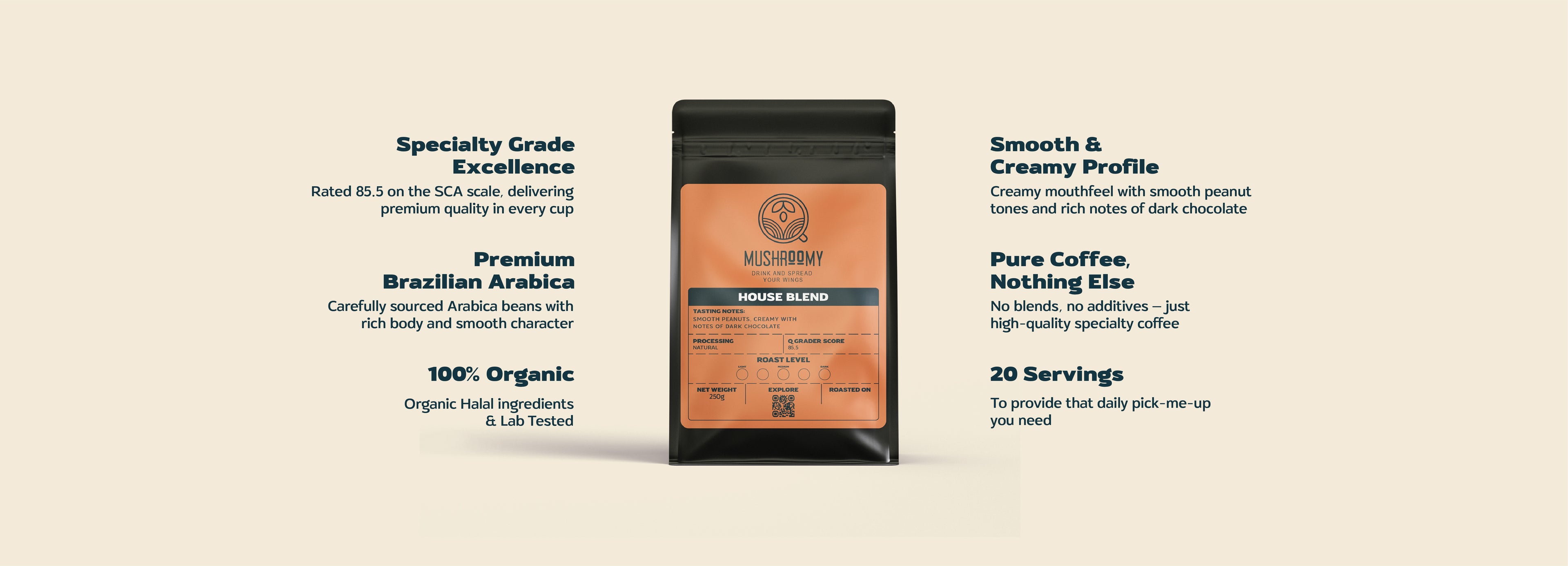 A unique blend of speciality grade coffee & certified organic Lion's mane, Reishi , CHAGA & Cordyceps Mushrooms.