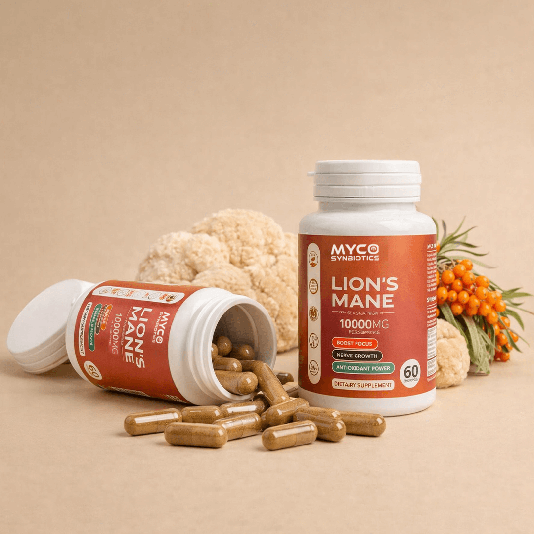 Boost your brain and brighten your mood—naturally. Our Lion’s Mane + Sea Buckthorn capsules support focus, memory, nerve health, and overall wellness with every dose.