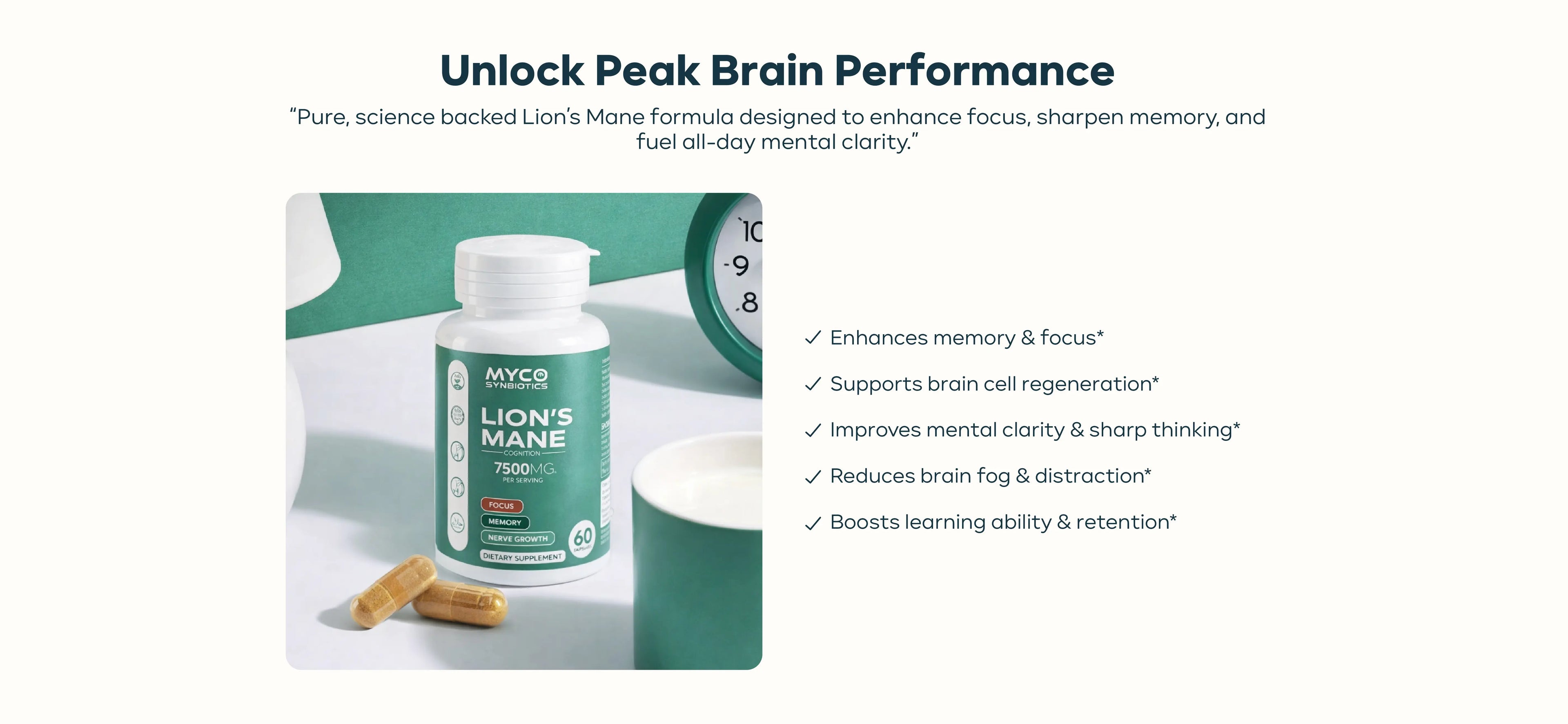 Feel the focus from your first dose most notice a difference within a week. Lion’s Mane kicks in fast to boost clarity, mood, and mental energy.