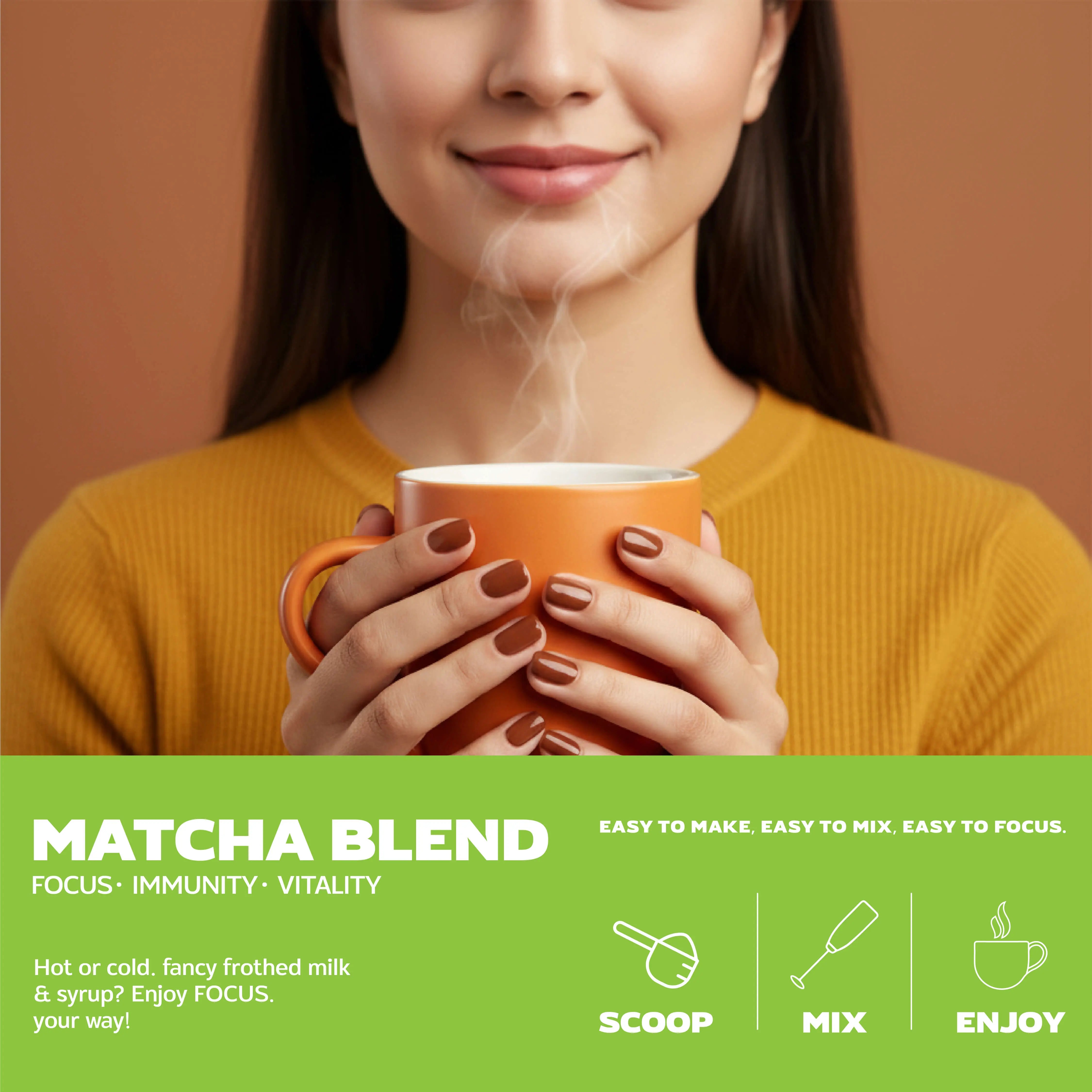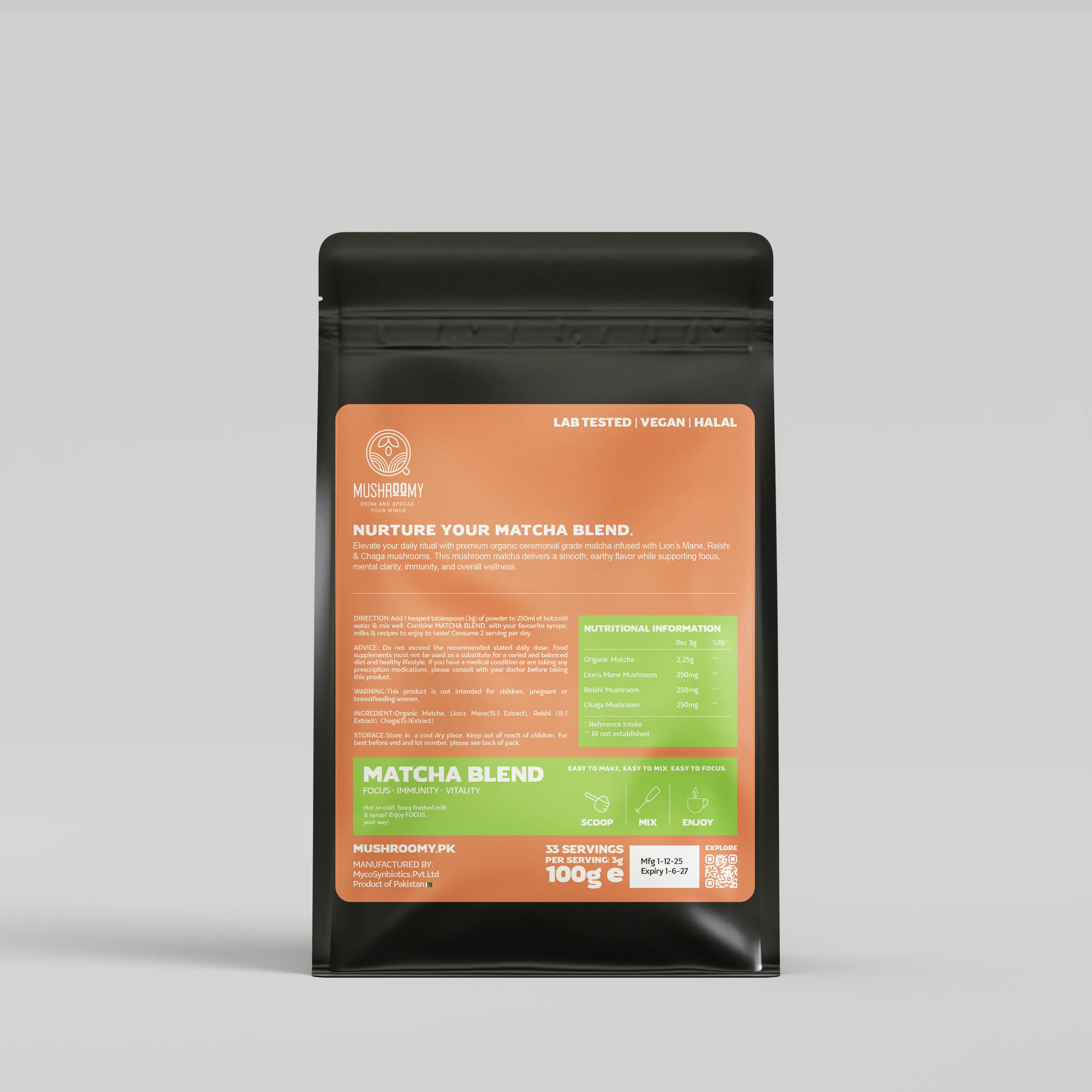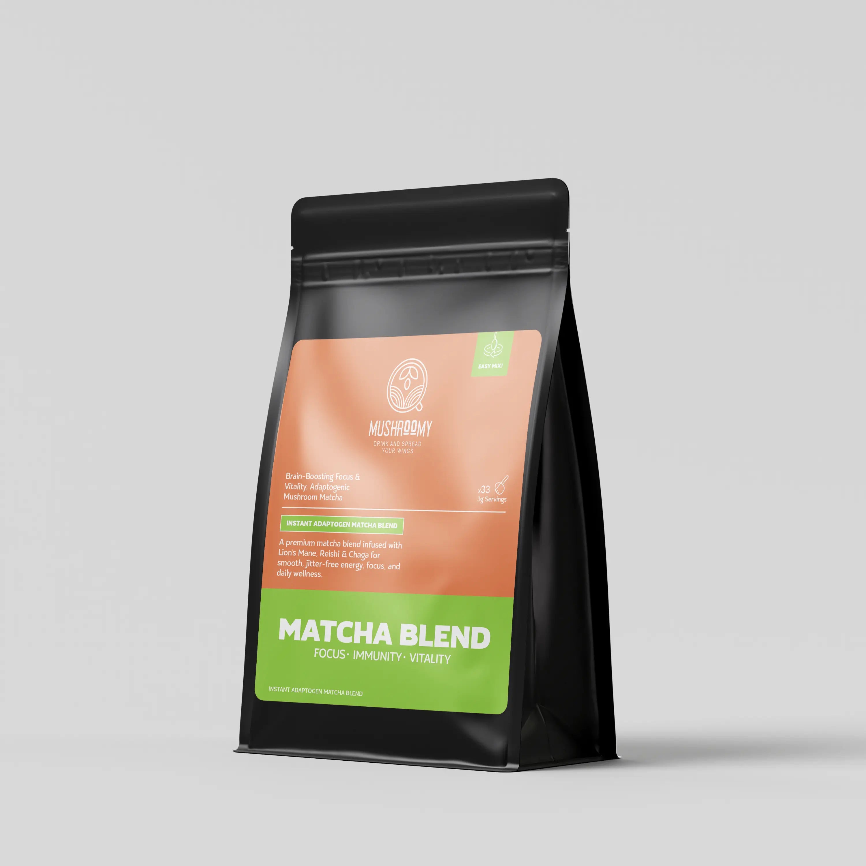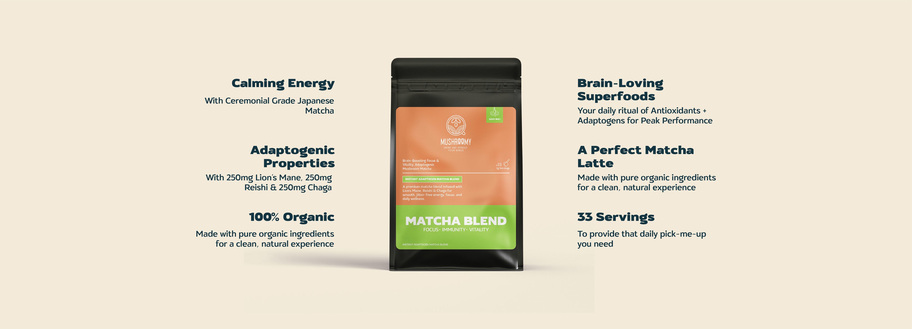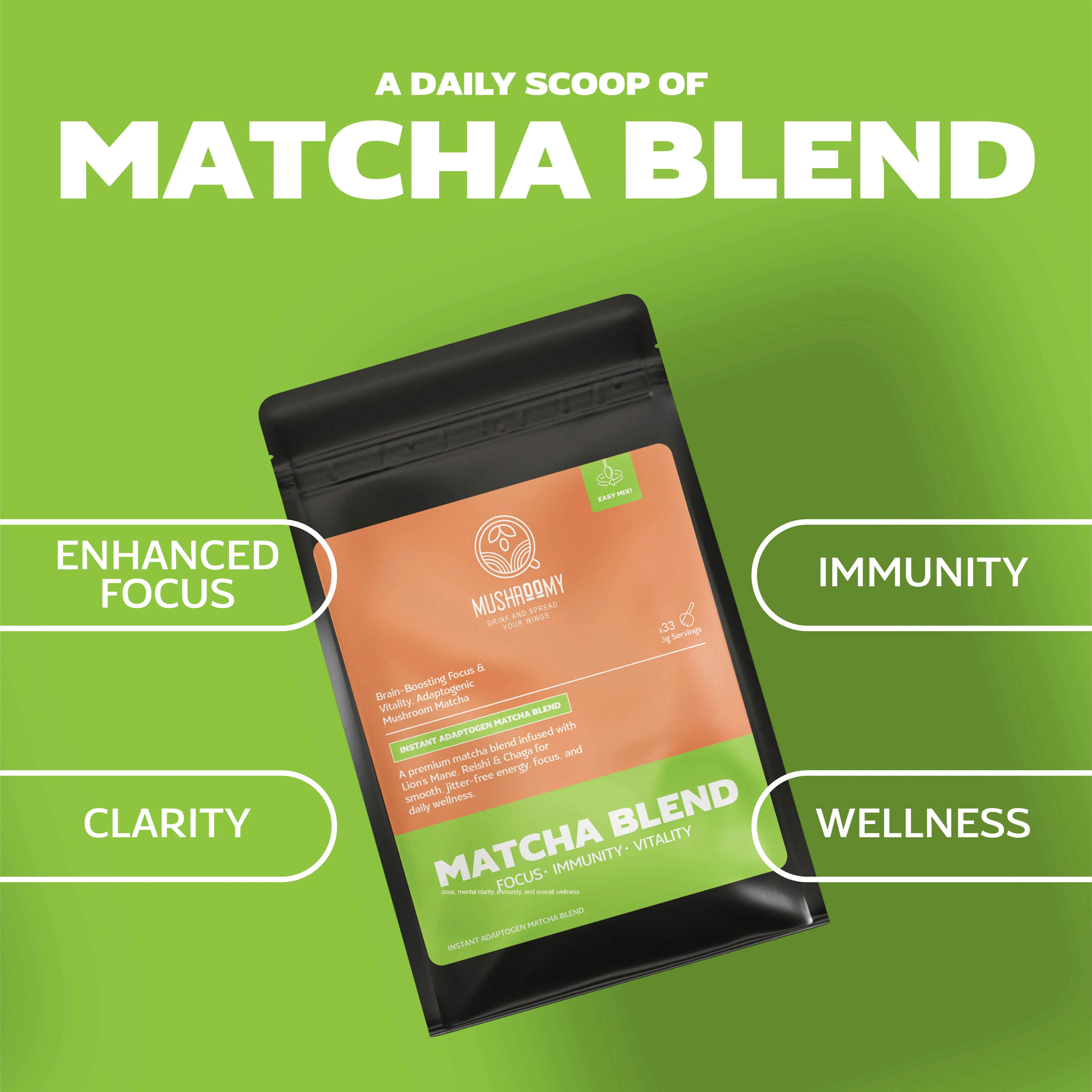 This blend combines ceremonial grade matcha with functional mushroom extracts, offering added benefits for focus, immunity, and stress balance beyond regular matcha.