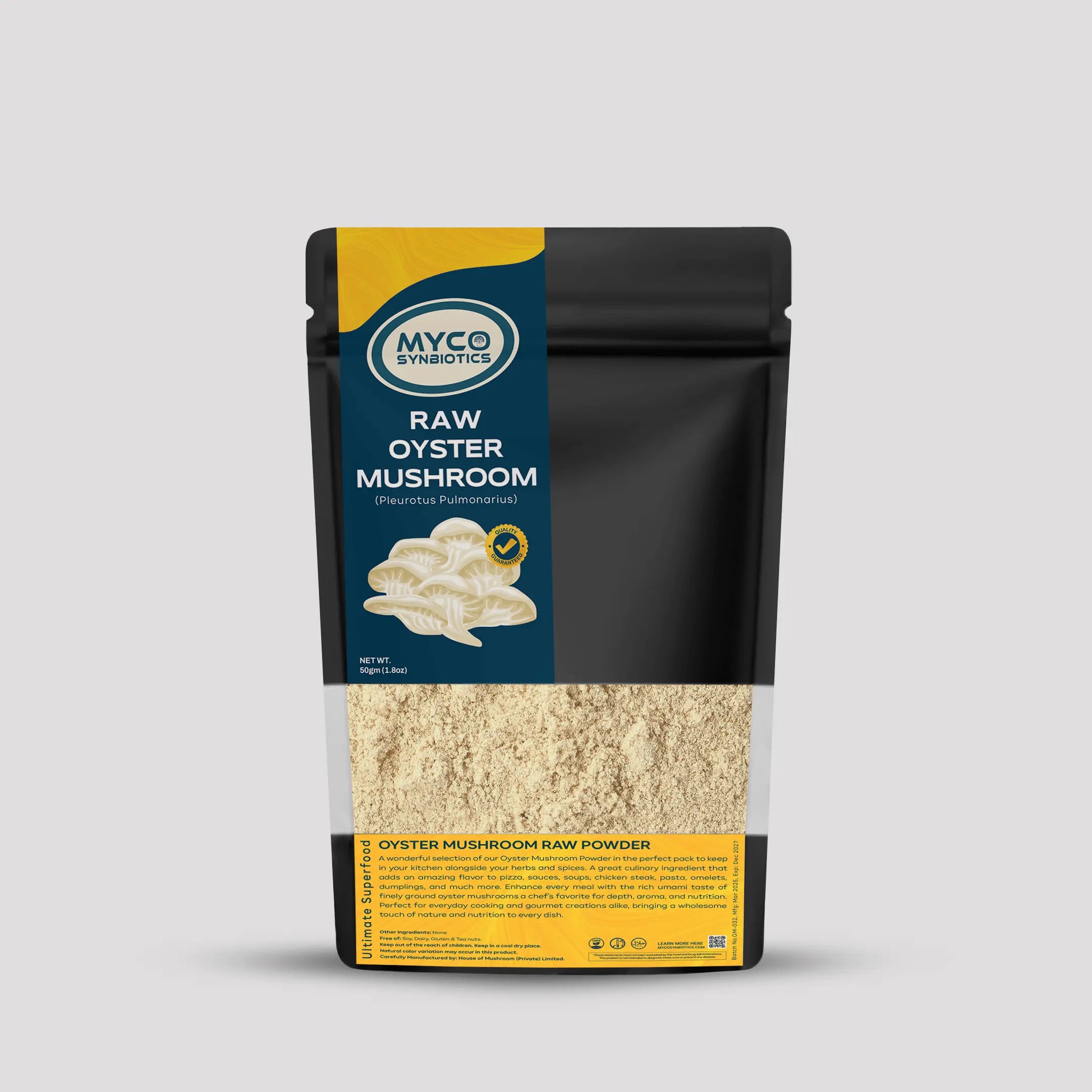 Experience the natural goodness of Oyster Mushroom (Pleurotus ostreatus) in pure raw powder form.