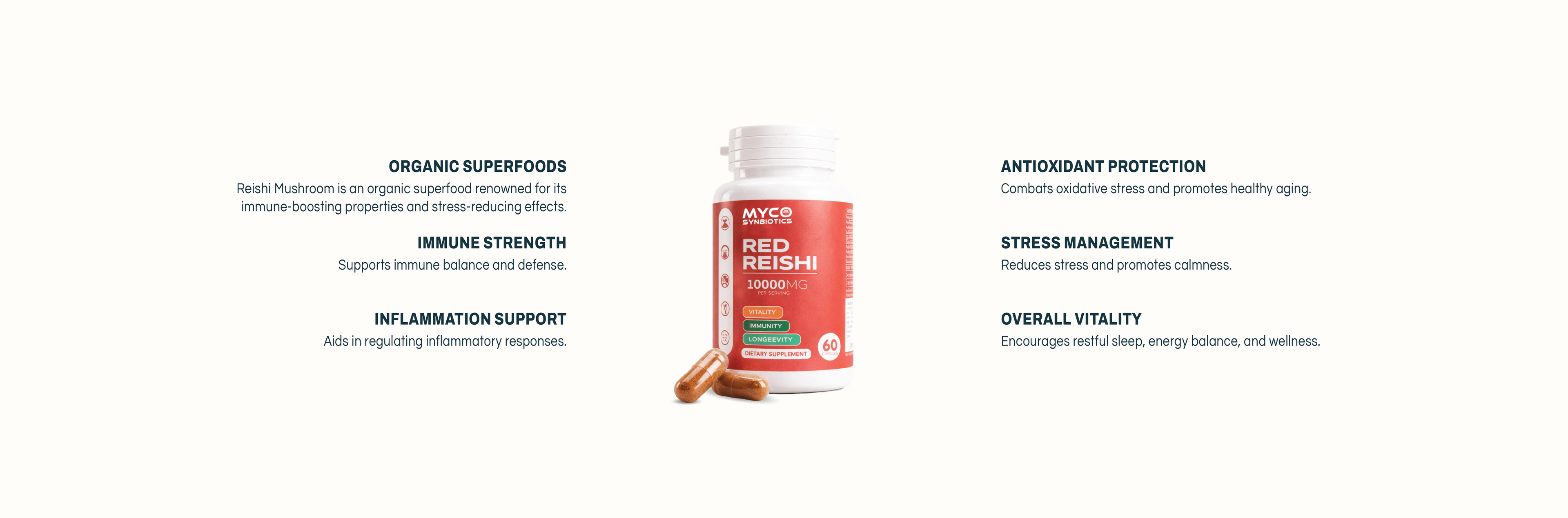 Renowned for its powerful adaptogenic properties, promotes immune health, reduces stress, and supports heart and liver function. Packed with polysaccharides and antioxidants, this supplement enhances vitality, balances hormones, and helps the body adapt to daily stress, providing a holisticapproach to wellness and longevity.