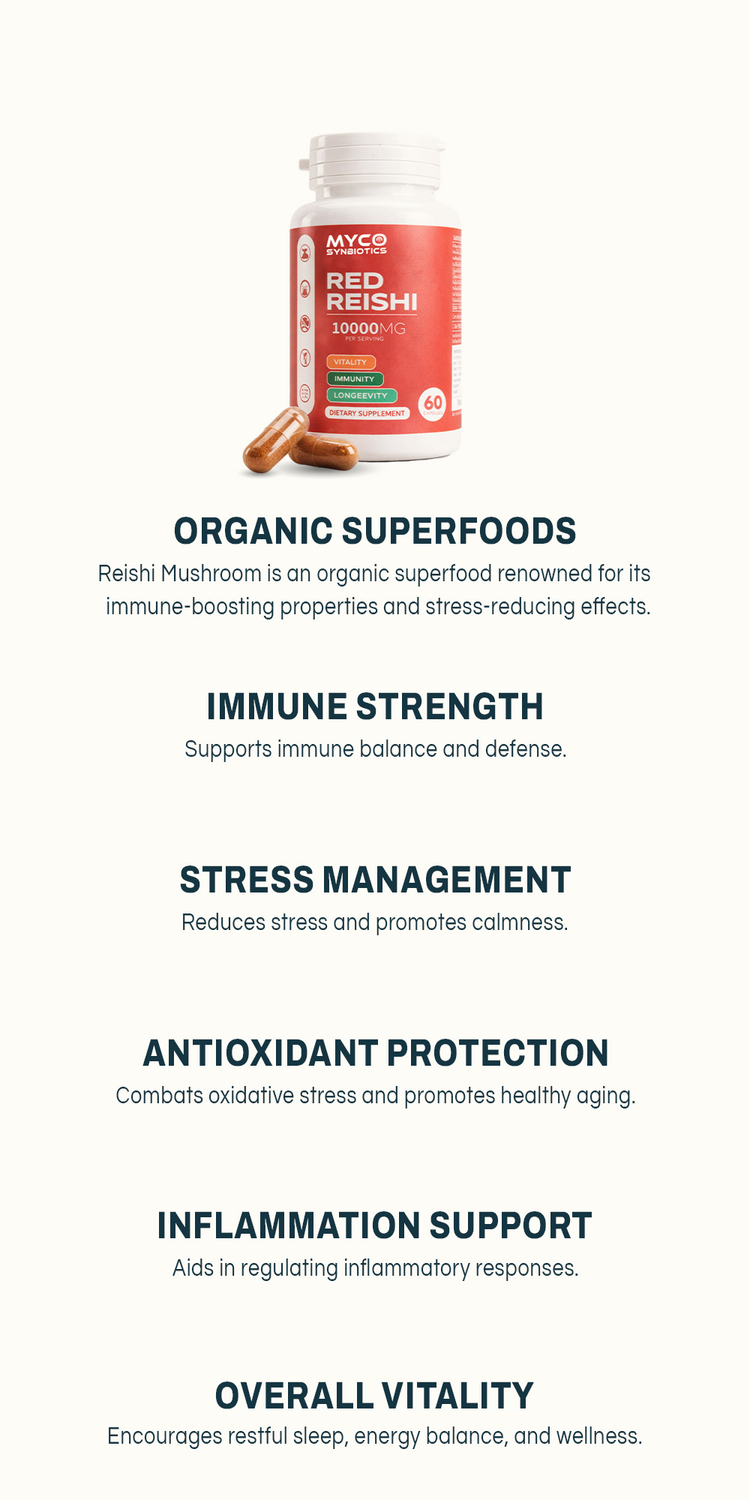 Red Reishi mushrooms are adaptogens that balance the body, reduce stress, and promote immune health, making them ideal for overall wellness.